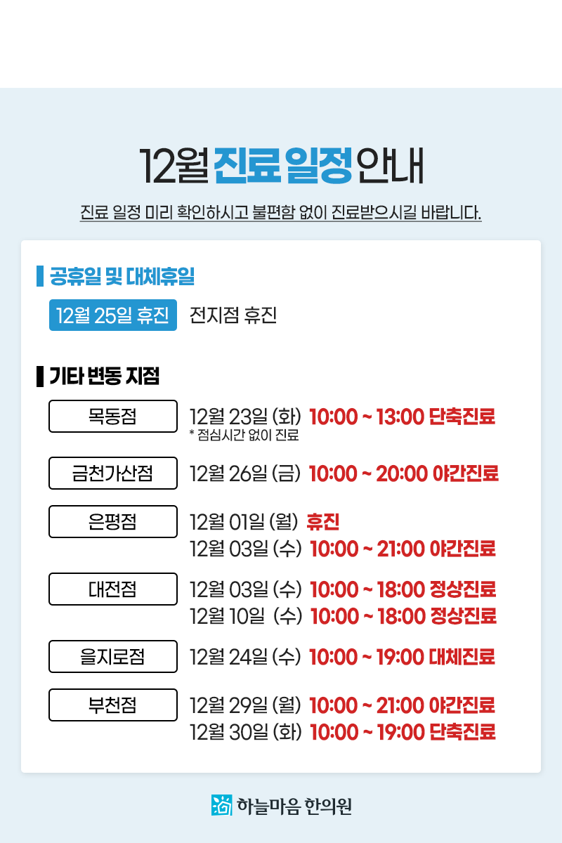 12월 진료일정 안내
